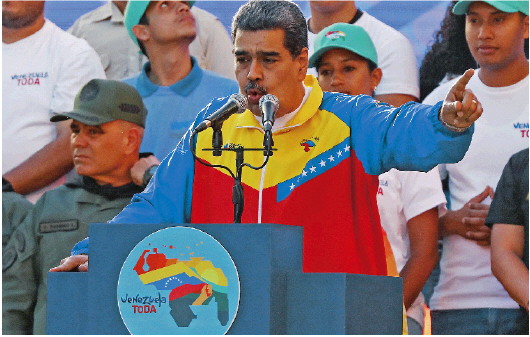 12月1日,在委内瑞拉首都加拉加斯,委内瑞拉总统马杜罗针对与圭亚那的领土争端发表讲话。 新华/路透