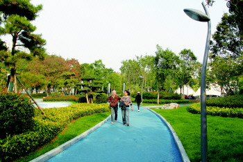 一个小公园,蕴藏大民生。济安口袋公园依托老运河文化,结合运河文化风貌,以“活脉、连园”为设计理念,通过一条充满活力的健身绿道串联周边自然美景,形成滨河慢行体系,打造滨河活力“蓝飘带”;并结合周边环境及社区的功能需求,设置了康体娱乐、活力休闲、生态游憩等功能区,通过花卉鉴赏、休闲观光、生态运动等功能,让每一个年龄段的市民都能在这里找到自己喜爱的内容。