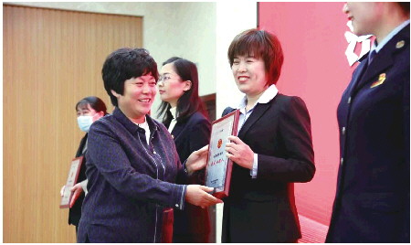 济阳区委书记秦蕾为“最美基层妇联人”颁奖。