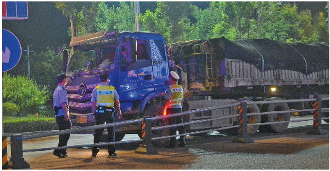 劝离穿城扰民大货车