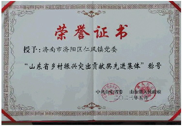 仁风镇党委被山东省委、省政府授予“山东省乡村振兴突出贡献奖先进集体”荣誉称号。
