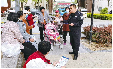 向社区居民宣传反诈,提高居民防诈骗意识。