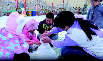 趣味玩雪 近日,沂源县悦庄镇中心幼儿园开展了团雪球、撒雪花、打雪仗、堆雪人等丰富的趣味玩雪活动。 (翟娟)