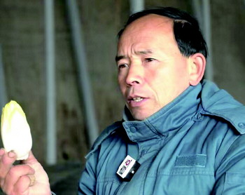 农户刘玉忠正在介绍自己种植的芽球菊苣。