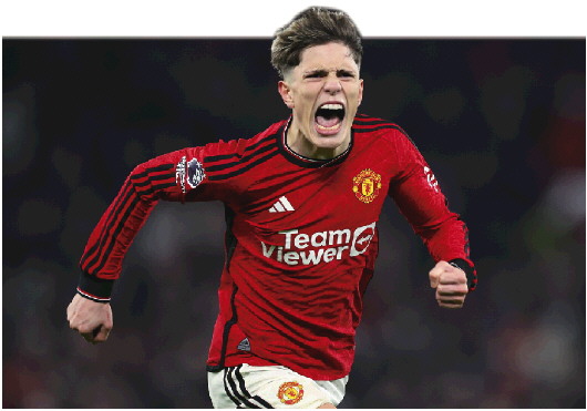 曼联球员加纳乔庆祝进球。