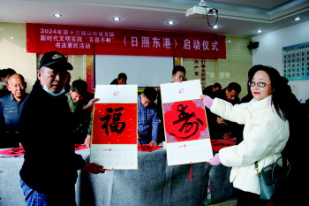 12月28日,2024年第十三届山东省文联新时代文明实践“百县千村”书法惠民活动启动仪式在日照市东港区东关社区举行。