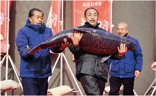 1月1日,以“鱼跃太白湖 龙年行大运”为主题的济宁第九届太白湖捕鱼节盛大开幕。捕鱼节最大的看点当数鱼王竞拍环节。当天,捕上来的头网大鱼第一时间送达竞拍现场。竞拍者轮番举牌,都希望能拍下鱼王,为新年讨个好彩头。现场高潮起伏,气氛十分热烈。经过几番竞价,最终重达103斤的“鱼王”以77.88万元拍出。