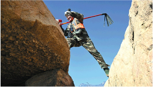 2023年12月25日,像往常一样,伴随着日出,李晓森将水壶灌满水,把几张煎饼、望远镜、对讲机、GPS往挎包一装,扛起“二号工具”走出家门,出门右拐,沿着蜿蜒的山路,向大山深处走去。