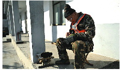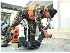 降雪后,虽然火险等级下降,李晓森依旧检查好灭火的设备。