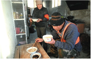 每天出发和归来,妻子田慧总是准备好热乎的饭菜。