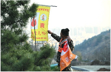 更换山上的火险警告旗。