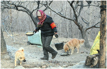 夫妻两人养了多条狗巡山看家,前几年其中两条在巡山时累死了。
