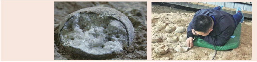 近日,在全球规模最大的恐龙蛋化石遗址——湖北青龙山恐龙蛋化石群国家级自然保护区,科研人员在遗址一号馆恐龙蛋化石露头修复治理过程中,偶然从一窝31枚的蛋窝里,发现3枚结晶的恐龙蛋化石。