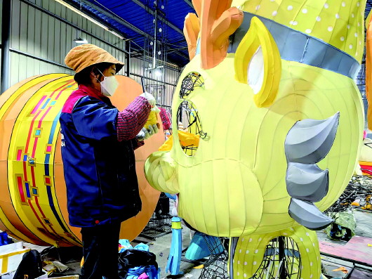 烟台市城管局数字化城市管理服务中心邀请来自四川自贡的非遗彩灯匠人到烟台进行2024年春节彩灯制作。据了解,自贡彩灯作为国家级非物质文化遗产有着复杂的制作工艺。首先,需将设计稿进行等比例放样,由彩灯匠人手工按照放样稿进行彩灯造型制作,用不同型号的方钢、角钢和铁丝扎出彩灯初步骨架。接下来,由焊工师傅通过点焊技艺将各部分骨架零件牢牢焊接在一起,再由电工师傅将LED灯串、LED柔性灯带用扎带固定在彩灯骨架的合适位置,并对骨架进行上胶处理,再由裱糊师傅用加密色丁布、高精喷布等颜色各异的布料对彩灯骨架进行裱糊处理,并剪多余布料,至此灯组雏形就基本完成了。最后,由美工师用喷枪、画笔对彩灯细节进行进一步描摹,例如在眼神、酒窝等位置勾勒出造型彩灯栩栩如生的神态,此步骤也是最考验彩灯匠人技巧手艺与制灯经验的过程。