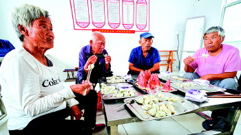 老人在孝善食堂享用午餐
