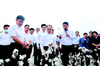 突出产业特色。拓展全程机械化、全产业链融合、棉菌轮作、棉花制种产业现代化四条产业升级路径,推进“育繁推销一体化”棉花良种繁育项目尽快投产,开展省级棉花区域对比试验,选育优质耐盐碱品种,完善打造塑木、海洋渔业、食用菌、新能源、新材料等产业多点开花的“1+X”稳固产业格局。赴浙江嘉兴考察,量身定制适合当地特点的全程机械化设备,实施机播机采、秸秆还田利用、废旧地膜回收3方面补贴,促进扩大种植面积、减轻劳动强度、增加棉农收入,实现群众快乐植棉,着力打造全国棉花全产业链融合发展先行区。