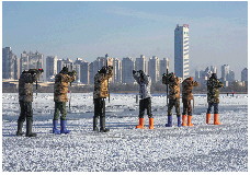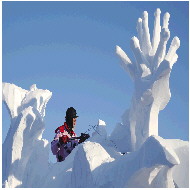 雪雕艺术家冰城秀技。