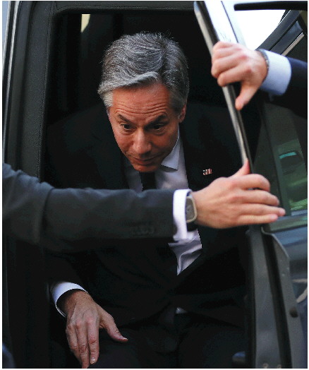 巴以冲突爆发几天后,布林肯于2023年10月11日至13日首次到访中东,原计划只访问以色列和约旦,但短短三天内,他在以色列、约旦河西岸、约旦、卡塔尔、巴林、沙特、阿联酋和埃及之间展开了密集的“穿梭外交”。其中,他还罕见地在一次出访中两度访问沙特和约旦。
