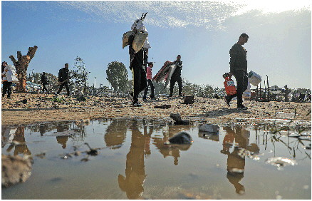 ◥1月22日,在加沙地带南部城市汗尤尼斯,人们逃离家园。 新华社发