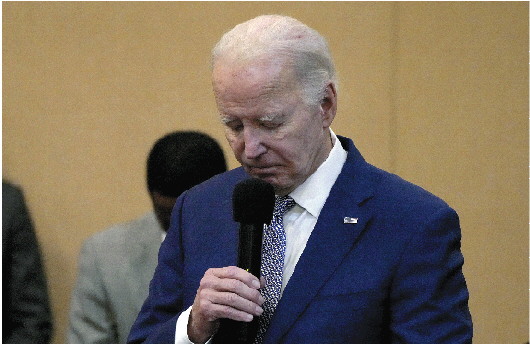 28日,拜登在南卡罗来纳州西哥伦比亚一座教堂内发表讲话时,为遭袭死亡的美军士兵默哀。 新华/美联