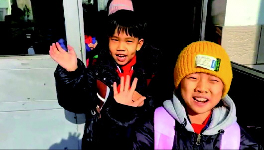 1月27日,古寨小学的孩子们在离校时对班主任挥手告别。当天伴着老师们的殷殷叮嘱,威海各中小学学生有序离校,开启快乐的寒假。 记者 陈乃彰 通讯员 倪素静 摄影报道