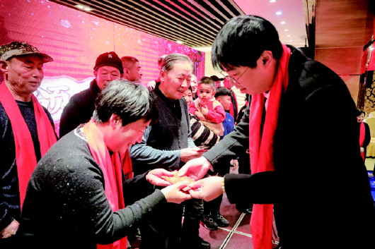 坚持举办员工及家属年会已有19年,2007年起李双举开始给员工父母发感恩红包,此后金额每年递增,一直持续至今。不仅员工父母领红包,对于老人所在村子里的困难家庭,李双举也会委托员工父母送去一份红包,将温暖送到更多需要人,让孝亲敬老的美德传播得更远。