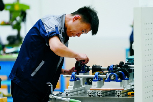 淄博市技师学院选手于瑞健参战第一届山东省职业技能大赛装配钳工项目。