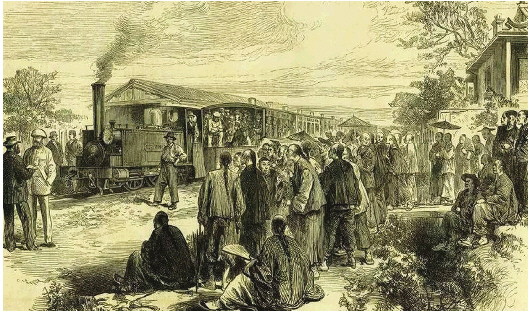 1876年,吴淞铁路开通运营时的场景