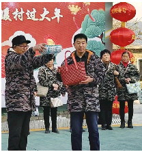 4岁的小朋友唱着歌,稚嫩的童声清澈干脆,有着清新悠扬的乐趣;三位附近村庄来的老师儿,带来了三句半节目,形象的动作、令人捧腹的语言,节目可谓妙趣横生。等待着、等待着,老秦开始走秀了。上身统一穿着迷彩服,和着音乐声,边走着模特步,边高高举起亲手编织的挎包,12位队员依次亮相。