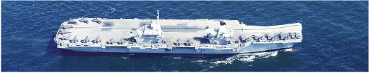 “伊丽莎白女王”号是英国海军“伊丽莎白女王”级航母的首舰,全长280米,宽70米,甲板面积相当于三个标准足球场;排水量6.5万吨,采用全电力推进系统,最高航速25节,航程10000海里。武器装备方面,“伊丽莎白女王”号最多可搭载36架F-35B战机和4架直升机,另有3座密集阵近程防御武器系统和4座30毫米机炮。乘员总数为679人,还能搭载250名海军陆战队队员。