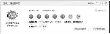 奖池方面,本期开奖结束后,7.17亿元滚存至2月28日(周三)开奖的第24022期。