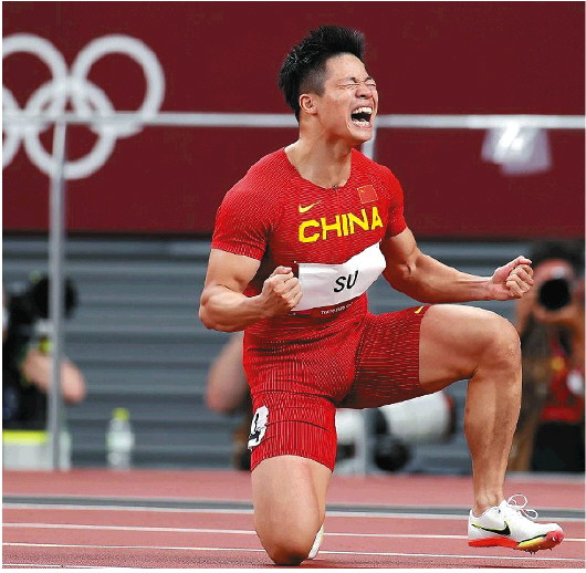 2021年8月,苏炳添在东京奥运会男子百米半决赛中跑出9秒83,排名第一并打破亚洲纪录,成为首位站上男子百米决赛跑道的中国人,并最终获得第六名。