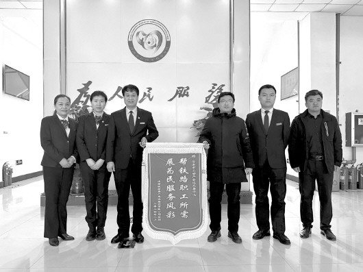 2月26日上午,济南铁路房地产建设集团有限公司有关人员专程到菏泽市政务服务大厅,将一面印有“帮铁路职工所需、展为民服务风采”的锦旗送到了菏泽市不动产登记交易中心窗口,对我中心积极主动为企业和职工提供高效、便捷的登记服务表示感谢。