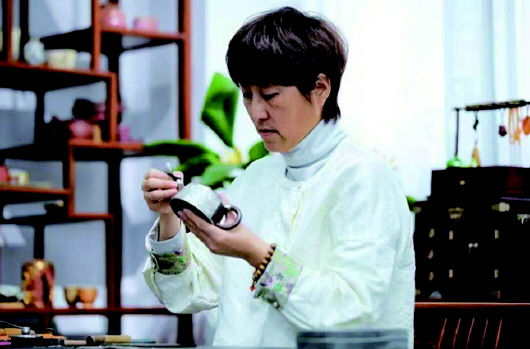 “从‘威海工匠’‘齐鲁工匠’再到‘山东手造大工匠’,一路走来,非常感谢工会给予我的支持与帮助,这些年我致力于锡镶技艺的创新发展,我相信,只要肯用心、肯钻研、肯创新,我们女性也能在自己的领域中绽放华彩!”从业31年,“创新”贯穿于李江玉的事业始终,由她研发的“锡镶微浮雕”“漆艺锡嵌”“锡镶内嵌”等工艺,使得锡镶产品从单一的紫砂陶瓷载体,扩展到玉器、琉璃、木器、麦饭石、木鱼石等八大系列300多个品种,成功诠释了万物可“锡”。