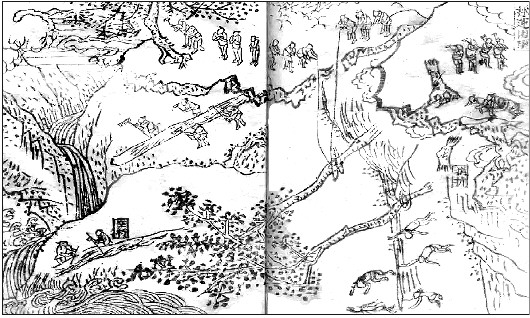 题图自《西槎彙草》,明代龚辉撰。1523年龚辉考中进士,任工部侍郎时管理淮河水利,并在江西南部授右副都御史,后来奉命赴四川采运木材为嘉靖修建仁寿宫所用。本书包括诗文、几篇文章以及一篇奏议,描写山川险恶、跋涉艰危、伐木运输艰险等情状,并附有十五幅图描绘采办木料的工具和技术,为研究中国伐木方法及工具提供重要材料。