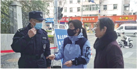 保安员在给市民介绍预约进入山师校园的方式。