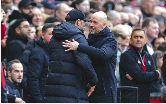 滕哈格(右)带队延续了争冠希望。 新华社发