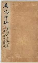 《梁启超与饮冰室》(天津古籍出版社,2002年5月)中辑有张树基撰写的《梁启超临<马鸣寺碑>册》,文中披露天津一位徐姓收藏家藏有一册梁启超早年临写的《马鸣寺碑》“经折式课册”,计98页,首四页为大字书“魏故根法师之马鸣寺”,正文字径约4至4.5厘米不等。封面行书题“马鸣寺碑”四字,光绪十七年由严仲爵题签,清代宣统二年经西村题跋并珍藏,后为清末翰林、书法家潘龄皋钤印收藏,最终转赠同好徐氏。