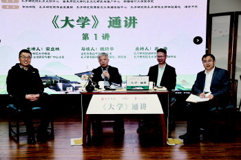 汪泷 通讯员 刘艺) 3月17日,“《大学》通讲”开讲仪式暨第一讲在孔子研究院国学大讲堂举行。孔子研究院副院长袁汝旭,曲阜师范大学教授、礼乐文化研究与推广中心主任宋立林为本次通讲开麦,山东大学儒学高等研究院特聘教授杨朝明,孔子研究院科研管理部部长、研究员魏衍华担任与谈嘉宾,活动由孔子研究院副研究员、礼乐文明中心副秘书长房伟主持。