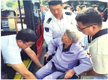 热心公交驾驶员帮扶特殊乘客。