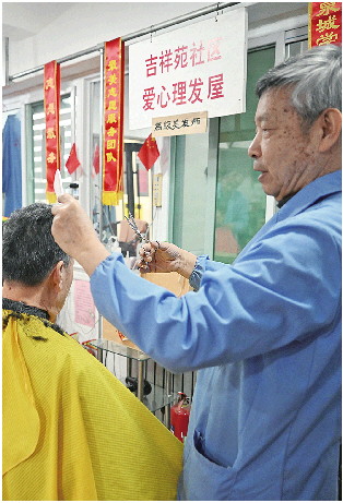 在爱心理发区域,宁波正在为市民免费理发。