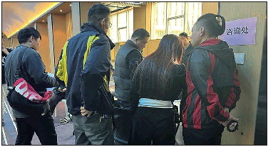 4月2日,山东省体育中心游泳馆咨询处,前来咨询退卡的市民排起小长队。