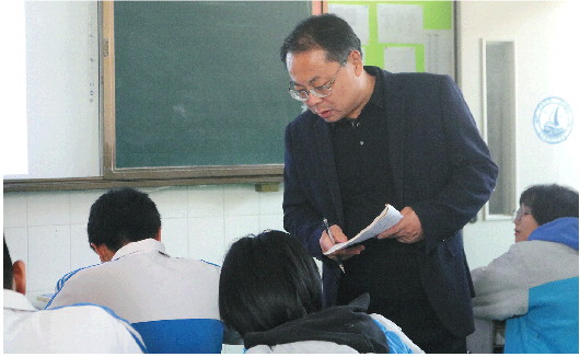 校长李伟在调研课堂成效。