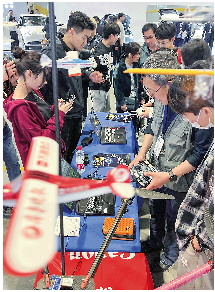 无人机模拟飞行,观众一试身手。 记者 刘军 摄