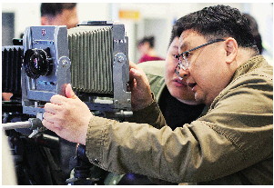 罩上一块盖布,对焦全靠手动,毛玻璃上看到颠倒的影像,经典的老式大画幅相机一亮相,就吸引了不少市民驻足围观。大伙在摄影大咖的讲解中,感受大画幅相机带来的魅力。