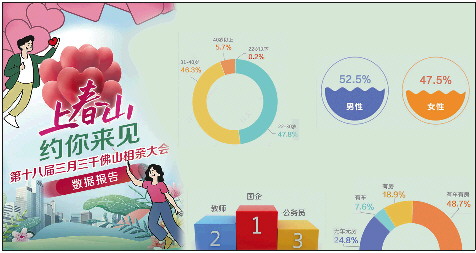 记者了解到,本届三月三千佛山相亲会,仅前期线上报名人数就有数千人。数据报告显示,报名嘉宾中,男性比例为52.5%,女性为47.5%。与上届千佛山相亲会类似,本届相亲会报名男嘉宾的比例仍然超过女嘉宾,说明越来越多的男性正在进入相亲市场。