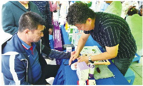 4月13日上午9点,社区文化节正式开始,现场的义诊区吸引了许多市民前来排队体检,来自漱玉平民大药房的工作人员和济南全福医院的医生坐镇现场,为社区居民测血压、把脉,提供健康咨询服务。