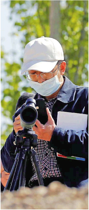 杜军在天鹅湖进行鸟类调查。 受访者供图