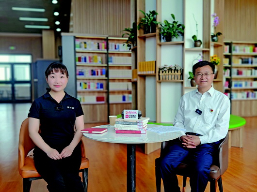 济宁市嘉祥县教育和体育局局长毛存响(右)正接受齐鲁晚报·齐鲁壹点记者专访。