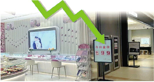商场内金店黄金最新报价。 中国证券报发